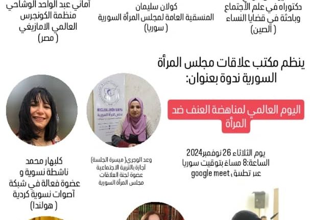 نظمَ مجلس المرأة السورية مكتب القامشلي ندوة حوارية إلكترونية عبر تطبيق google meet عن اليوم العالمي لمناهضة العنف ضد المرأة.