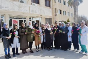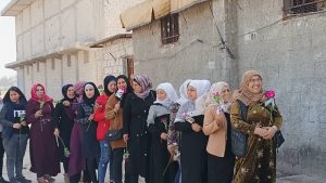 وهنأت عضوات المجلس في مدينة منبج النساء العاملات والكادحات في المعامل خلال زيارة لهن وللمقاتلات في مجلس المرأة العسكري يوم الثامن من آذار (يوم المرأة العالمي) من خلال اهدائهن الورود.