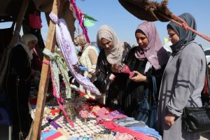 وفي ختام زيارات أعضاء المجلس بمدينة الرقة توجهوا إلى الخيمة التراثية لحركة لهلال الذهبي الثقافية حيث تعرض الأعمال اليدوية ولوحات الرسم والأعمال التراثية لثقافة المنطقة الخاص بالمرأة.