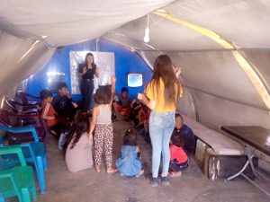 صرحت عضو لجنة المخيمات في مجلس المرأة السورية هبة محمد حول الهدف من إقامة أنشطة ترفيهية للأطفال في مخيمات النازحين :”نهدف من خلال هذه الأنشطة الترفيه والتسلية مساعدة الأطفال على التعبير عن أنفسهم من خلال أنشطة هادفة تساعدهم على أكتشاف ذاتهم وتنمي قدراتهم ومهاراتهم وتساعدهم على تفريغ العنف والضغط وتقليل التأثير السلبي عليهم.