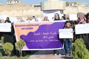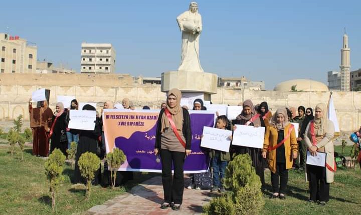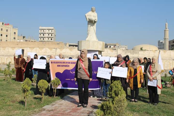 تحت شعار ” بفلسفة المرأة، الحياة، الحرية … احمي ذاتكِ” نظم مجلس المرأة السورية وقفة احتجاجية وذلك ضمن منصة فعاليات مجلس المرأة السورية لمناهضة العنف ضد المرأة بحضور كافة التنظيمات النسوية والمؤسسات والشخصيات المستقلة والأحزاب السياسية وذلك في ساحة المرأة الحرة في مقاطعة الرقة .