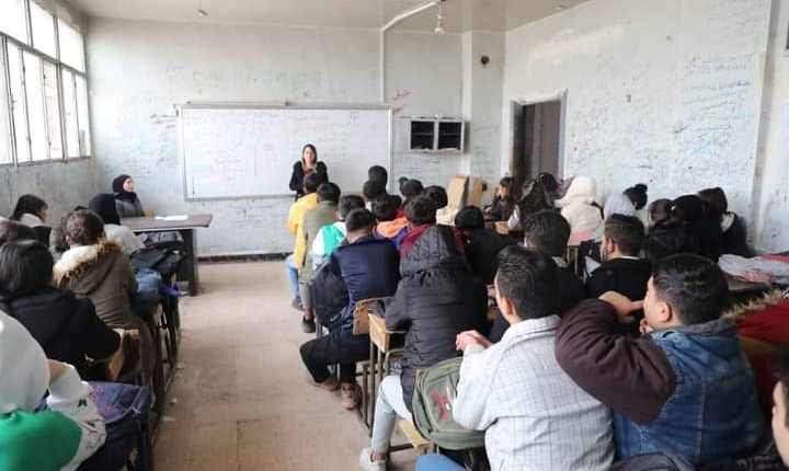 نظم اللجنة التنظيمية لمجلس المرأة السورية في حلب محاضرتين بعنوان العنف المجتمعي لطلاب المدارس في حي شيخ مقصود استهدفت المحاضرة توعية الفئة الشابة.